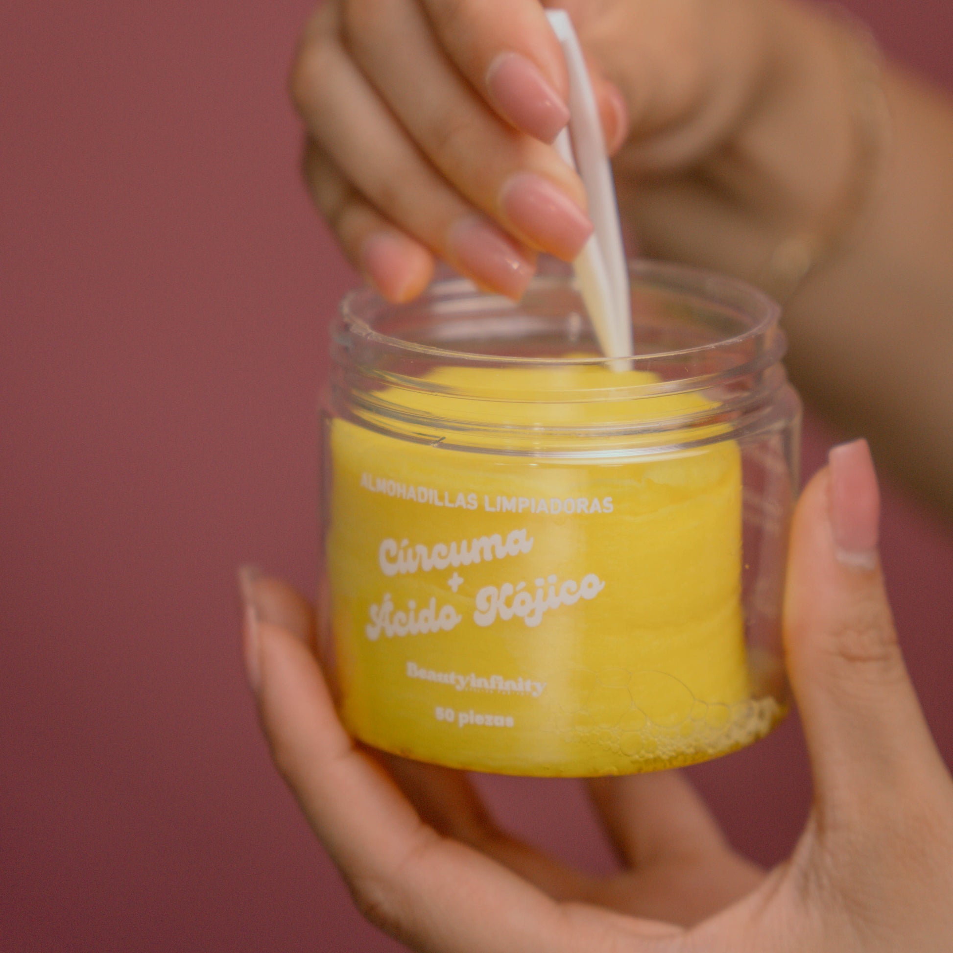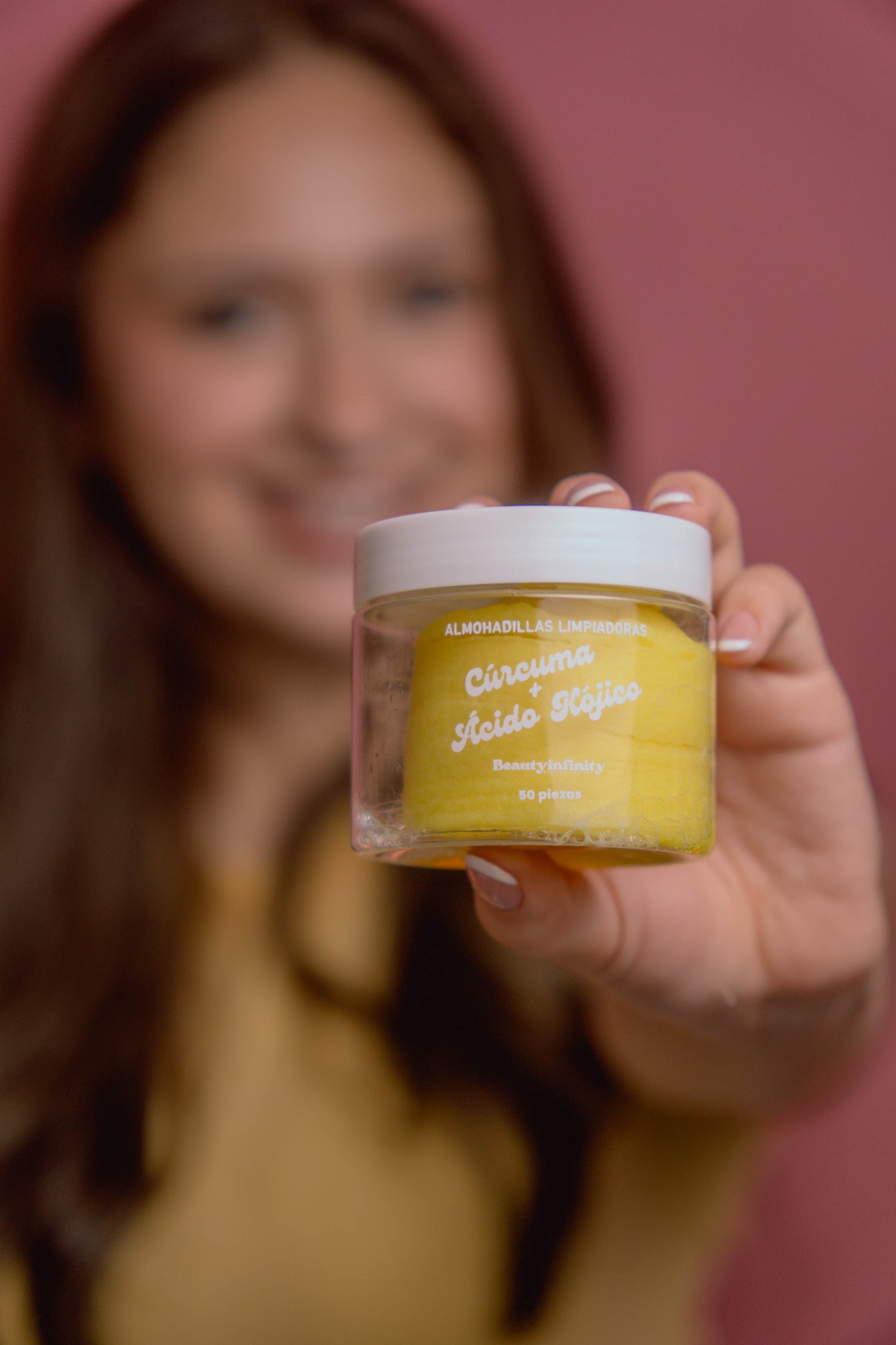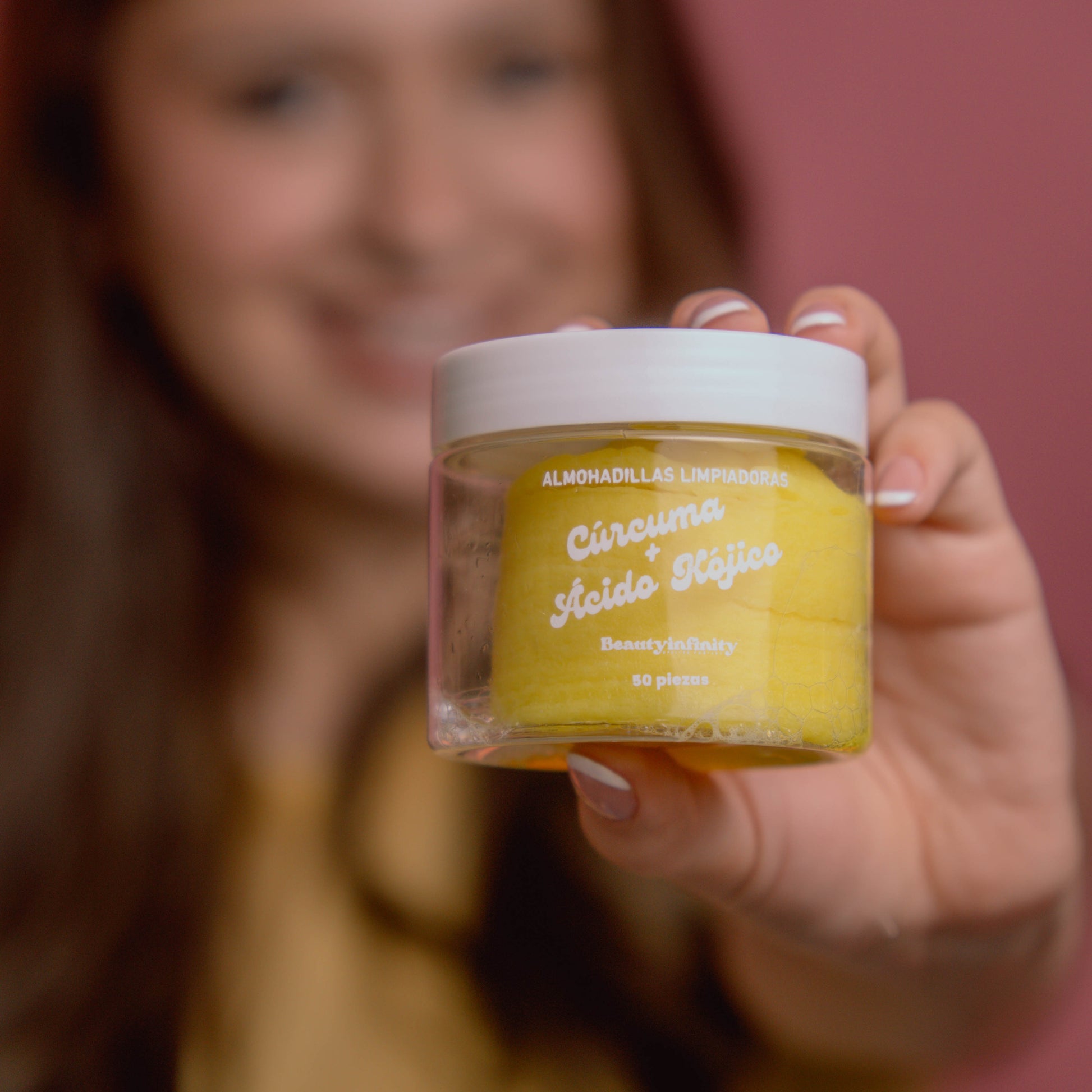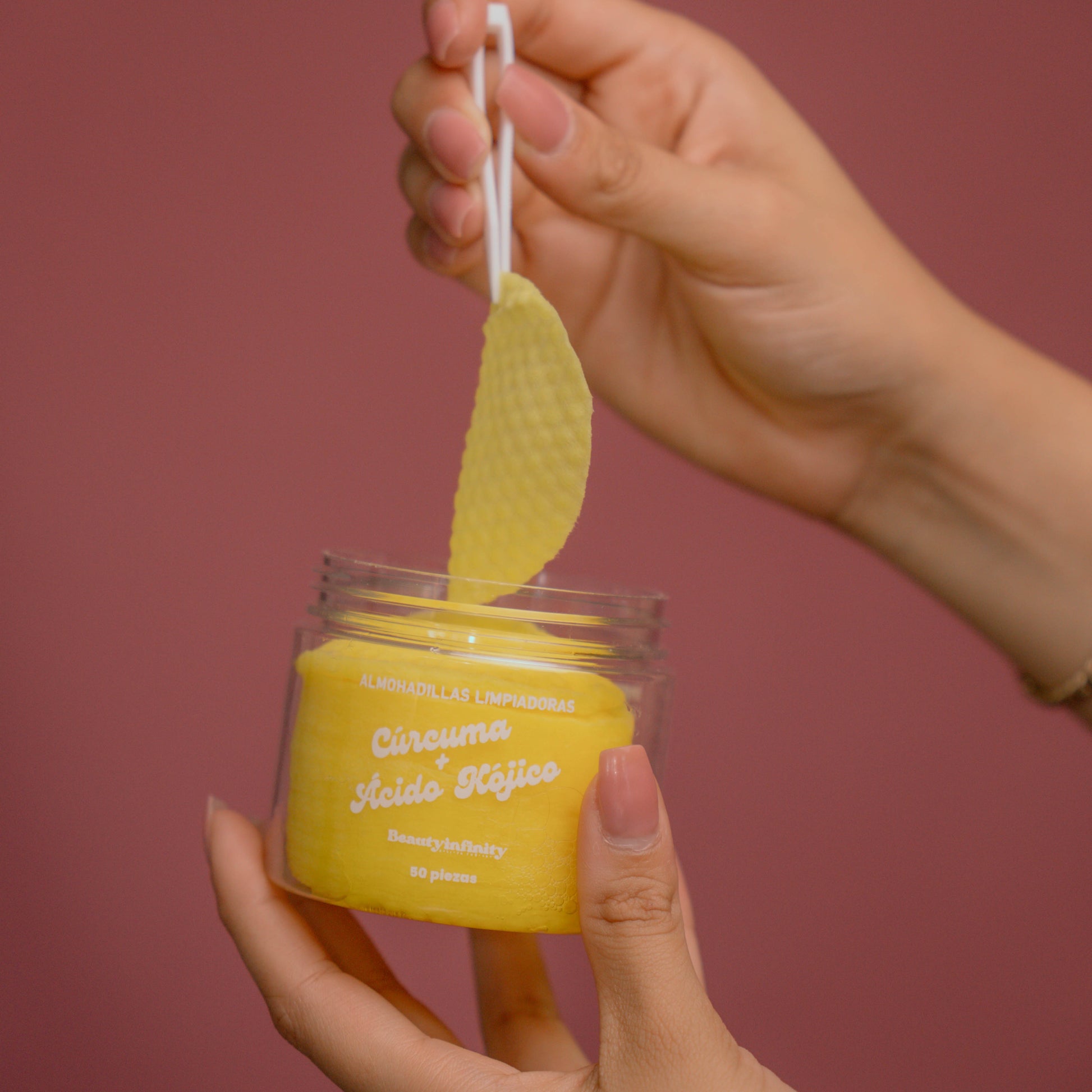 Elige las almohadillas auténticas, 100% naturales y súper espumosas de cúrcuma de Beautyinfinity.