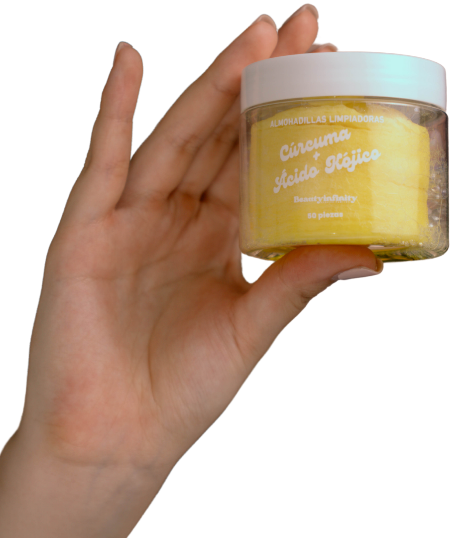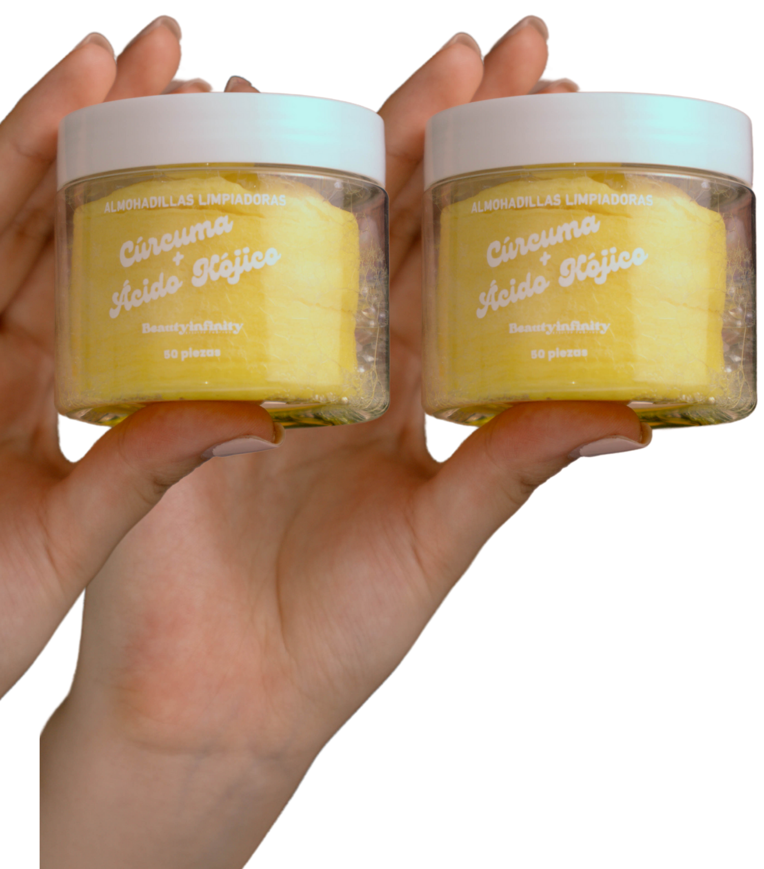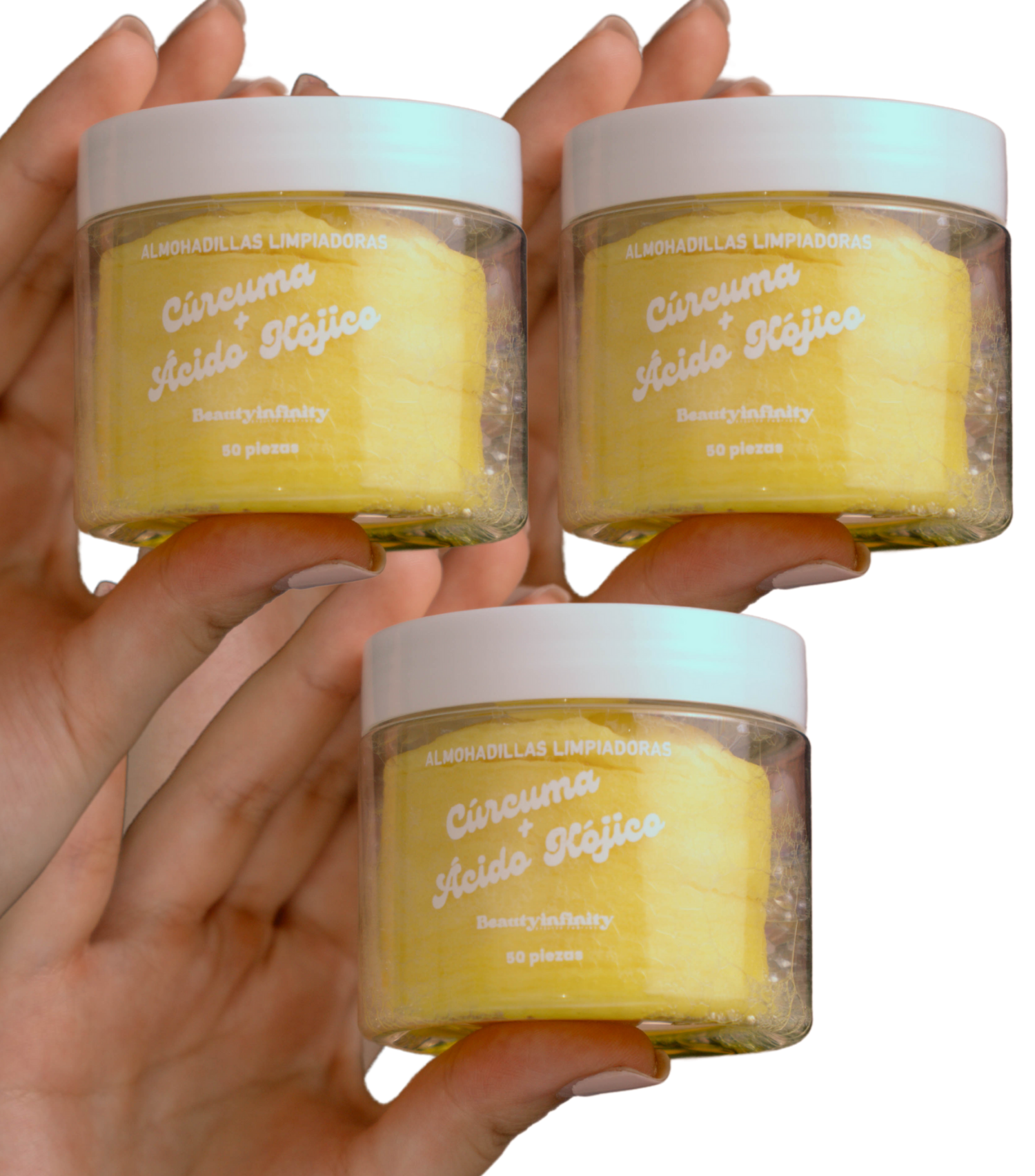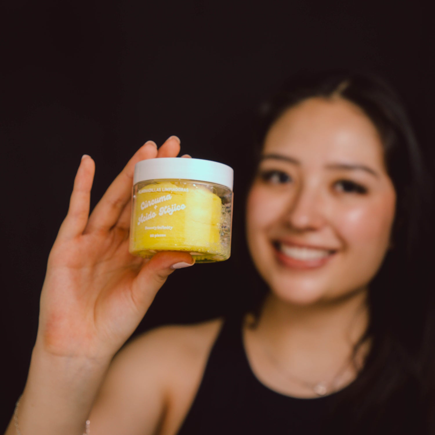Elige las almohadillas auténticas, 100% naturales y súper espumosas de cúrcuma de Beautyinfinity.